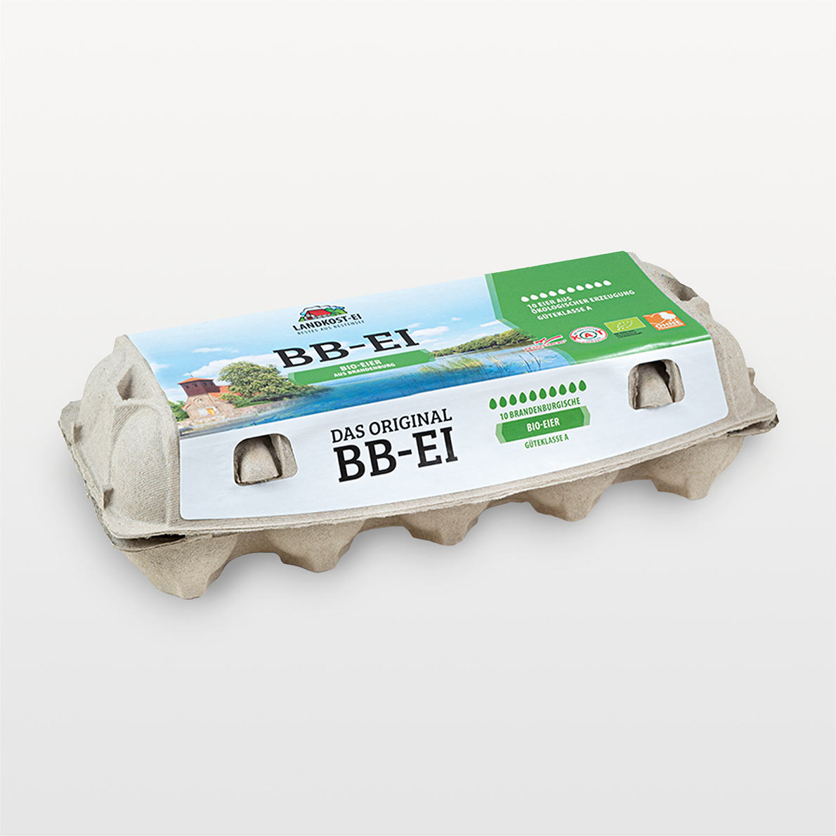Bio Eier die nur in Bestensee erzeugt werden, unser regionales Produkt „DAS BB-Ei“.